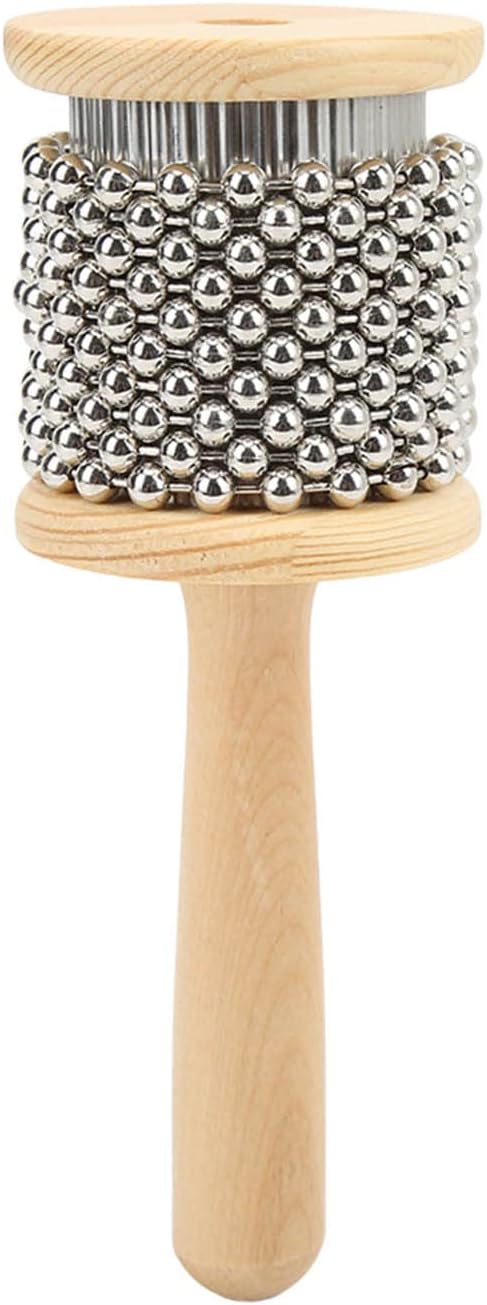 Wooden Hand Cabasa with Stainless Steel, Hand Shaker Percussion Instrument with Metal Beads for Adults Band Music Education Classroom Music or Playing at Home