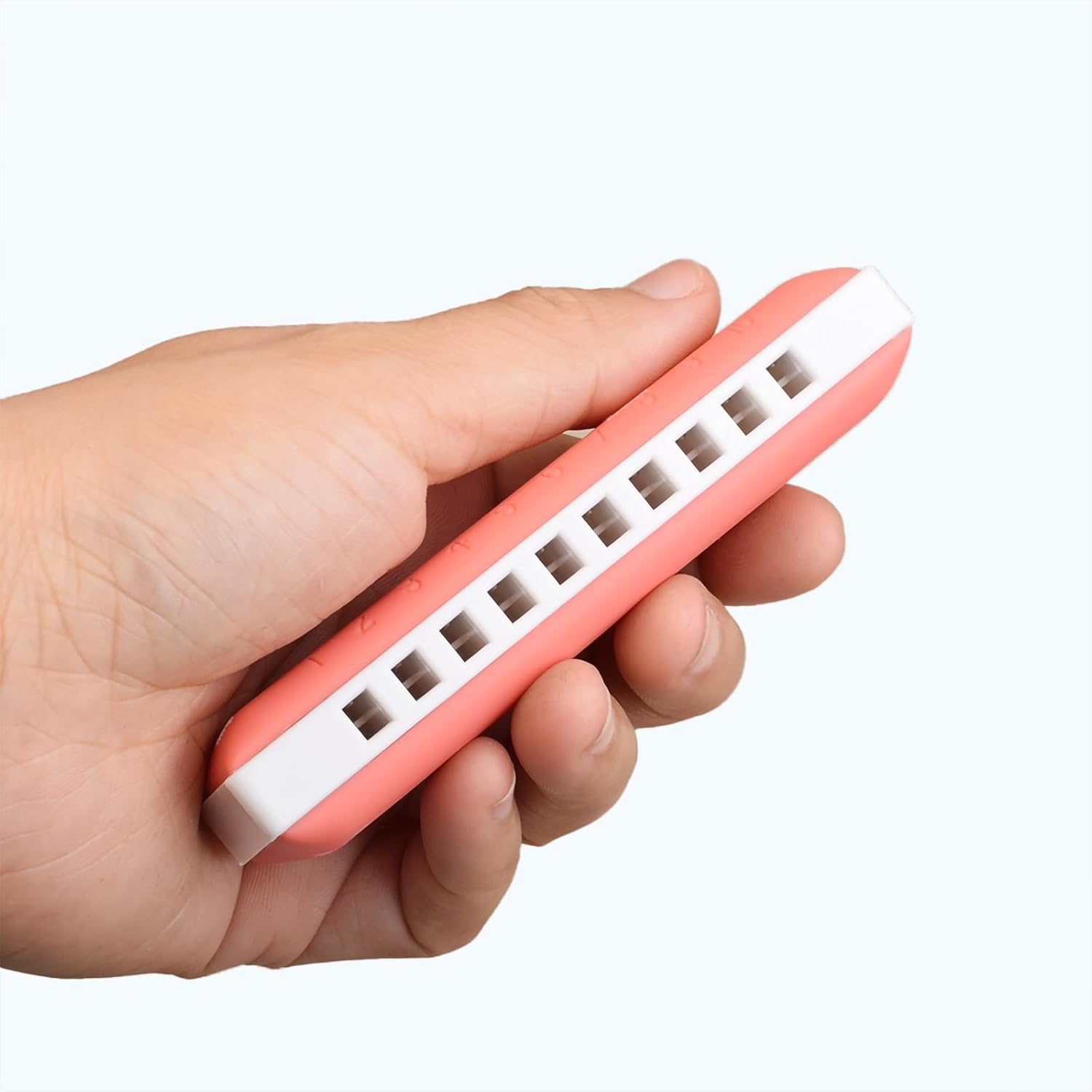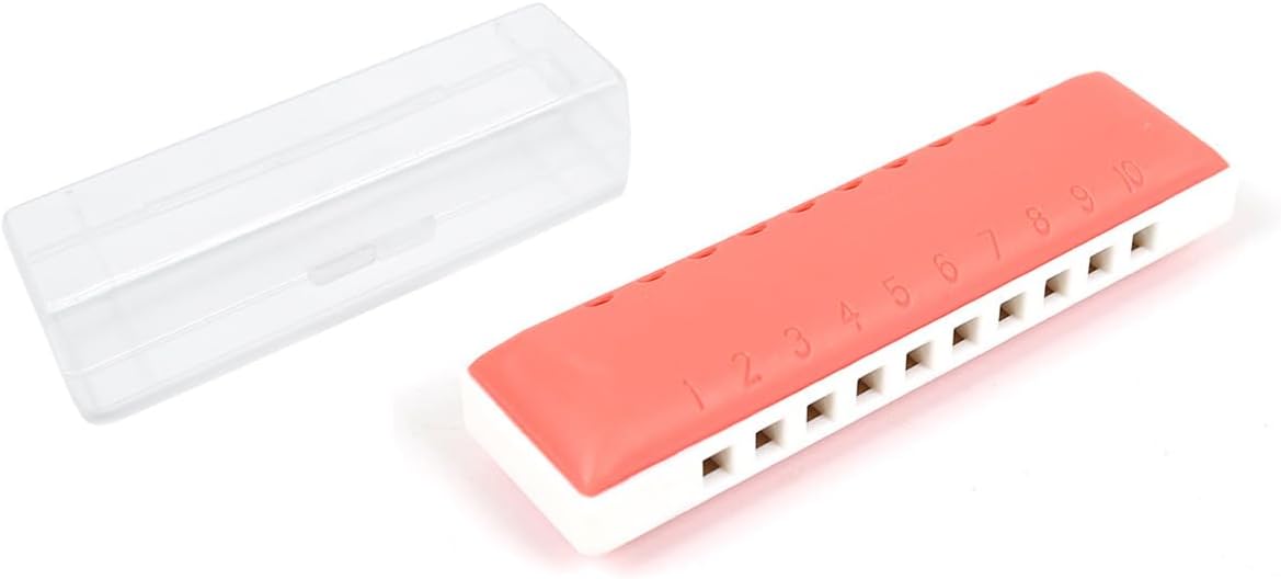 Key of C 10 Hole Harmonica,Pink Plastic Harmonica Musical Instrument with Case for Adults