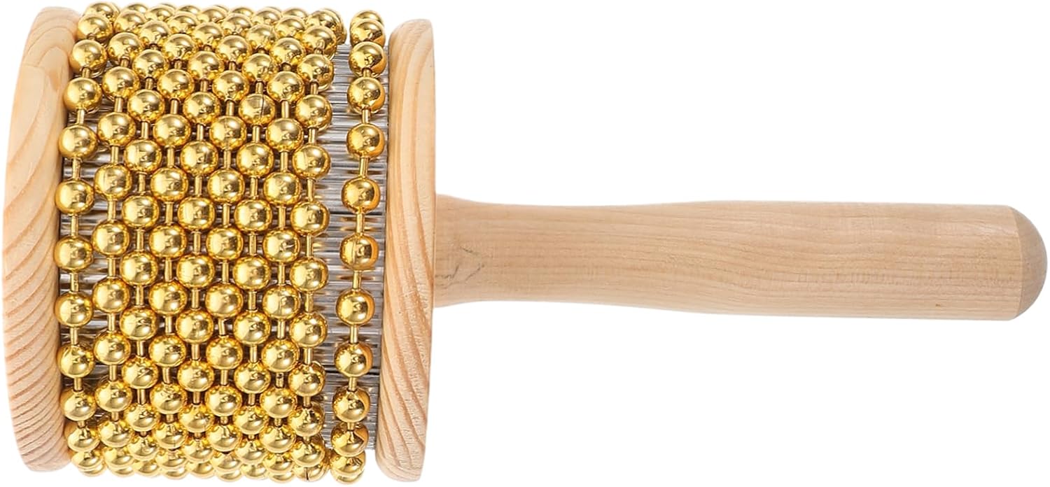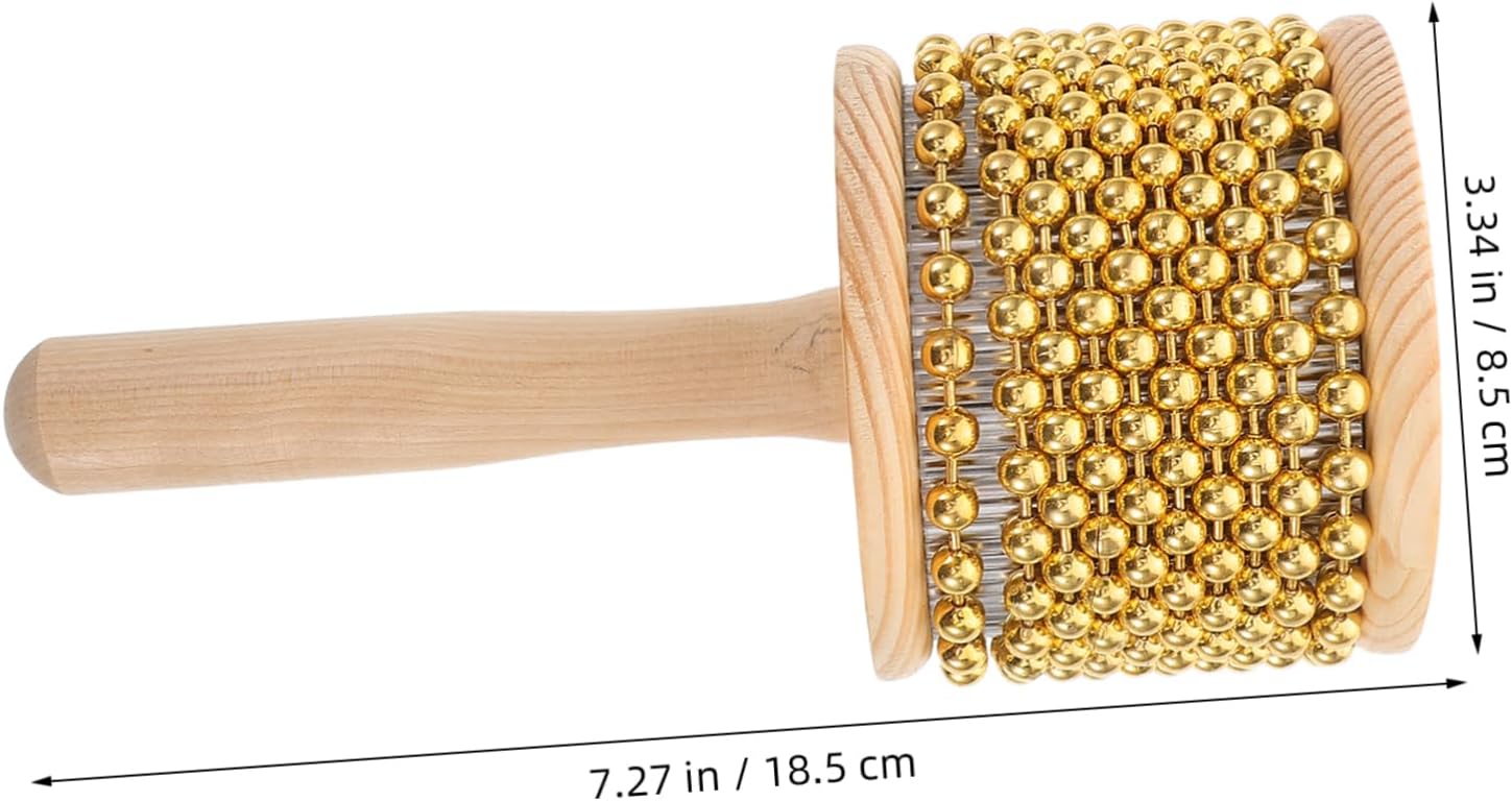 Wooden Cabasa Percussion Musical Instrument Metal Beaded Chain and Cylinder Pop Hand Shaker for Band Music Education 3.5inch,
